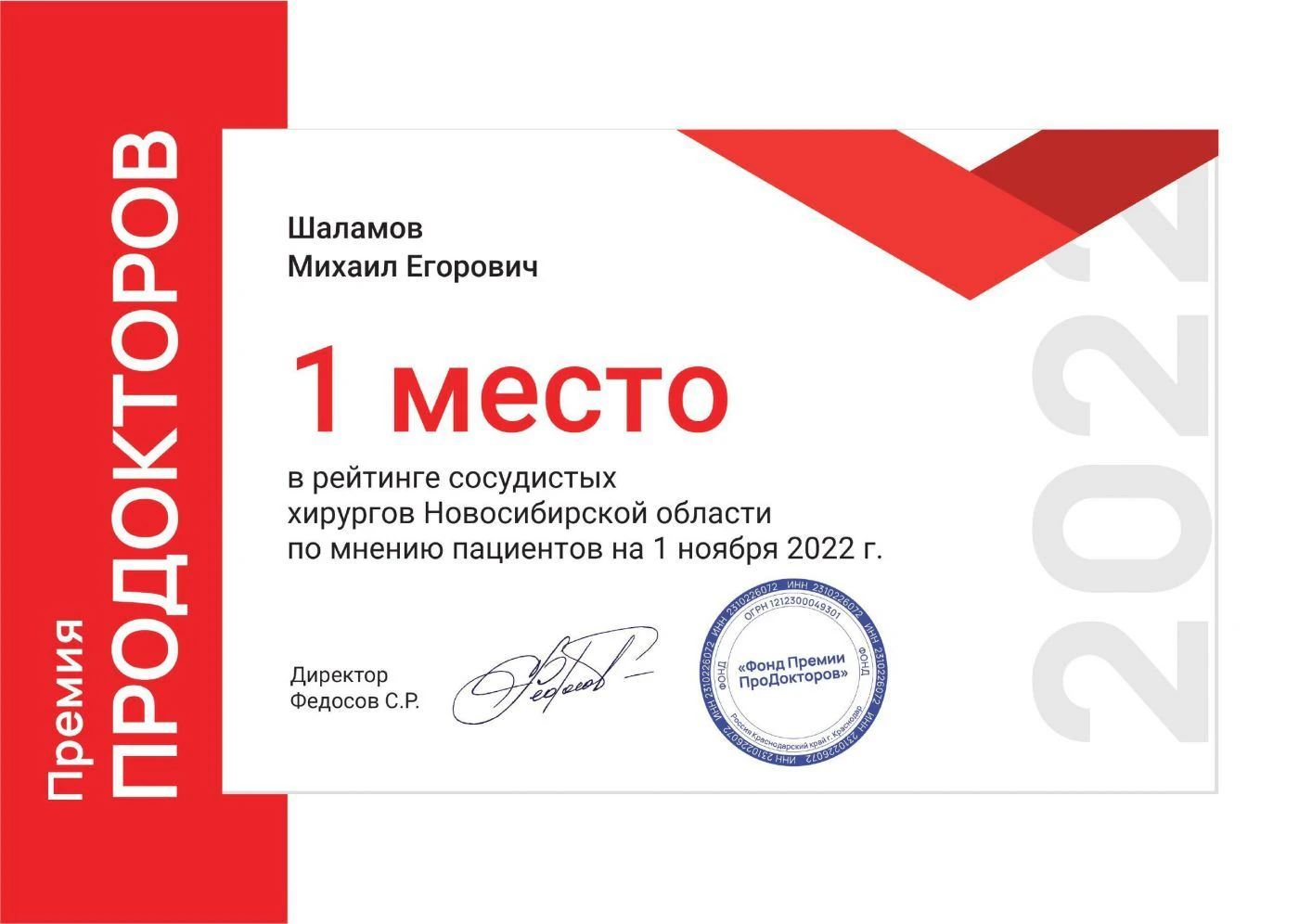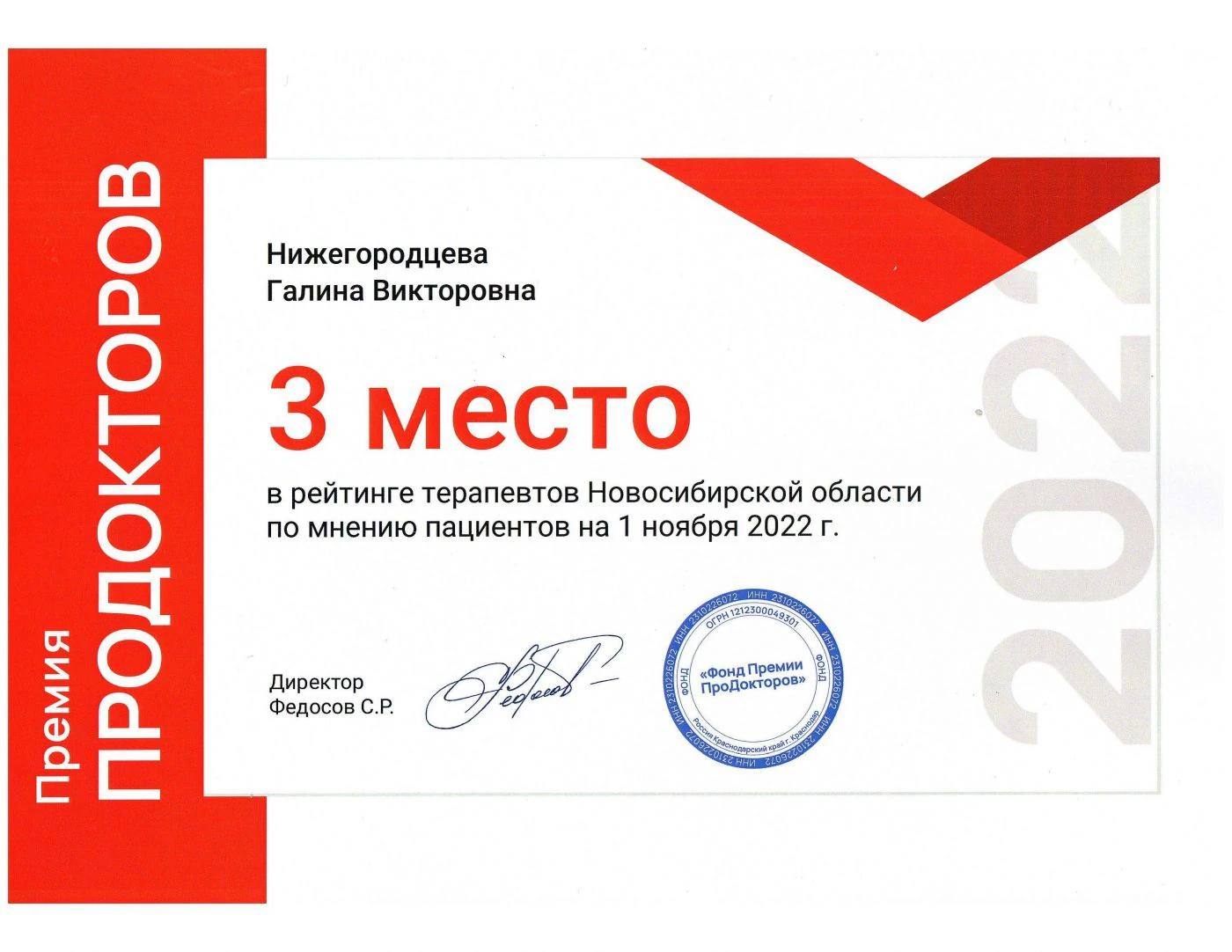 Медицинский центр "Дуэт" вошел в ТОП-10 2022 года среди медицинских центров Новосибирска по версии независимого портала "Продокторов".