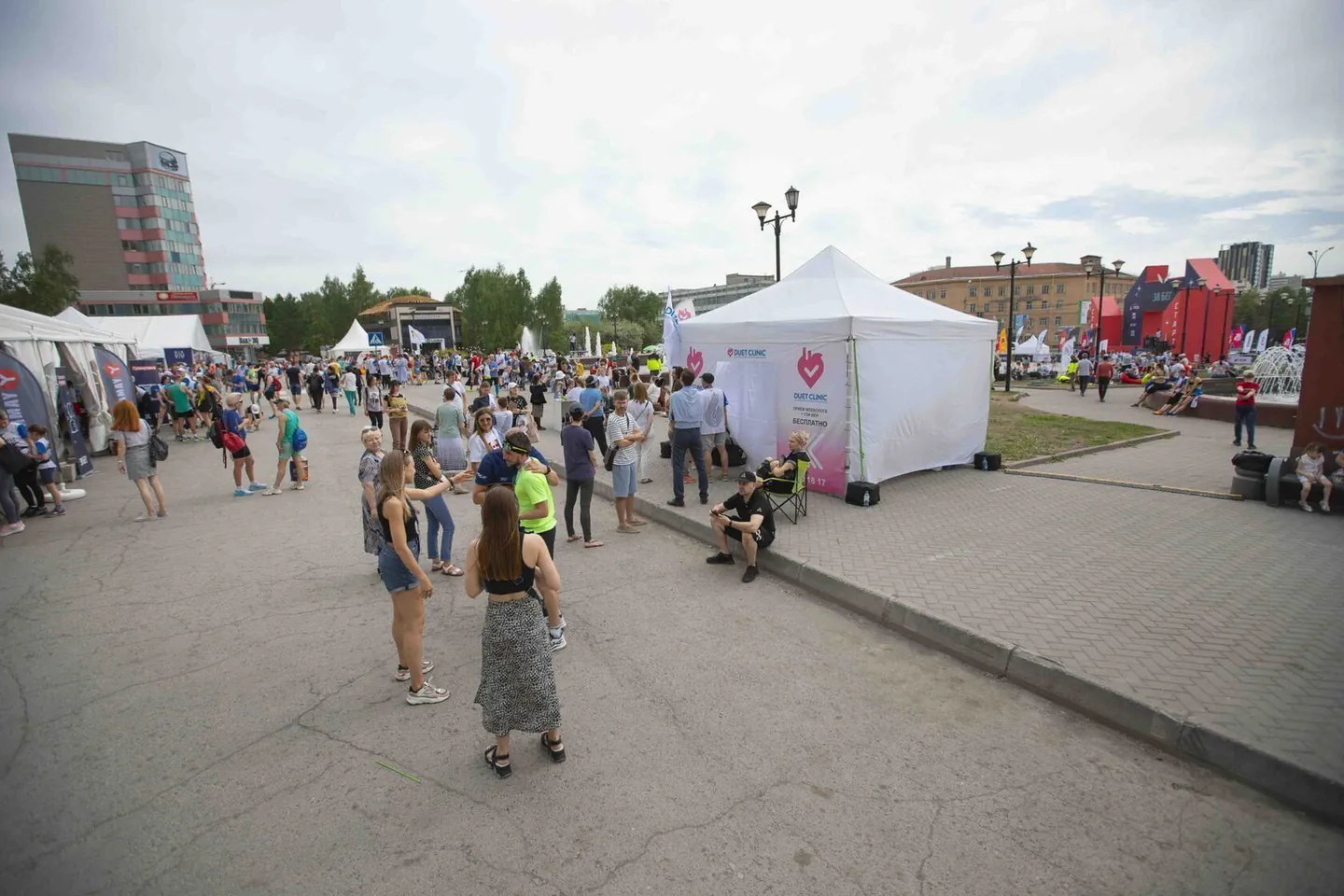 В Новосибирске спортивный фестиваль проходил на Площади Пименова (сквер ГПНТБ) целый день! И DUET CLINIC были партнерами полумарафона.