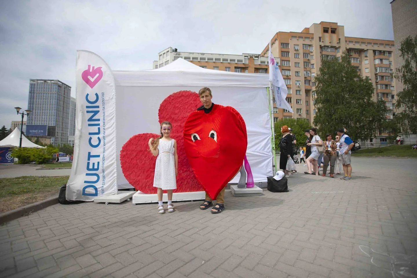 Также на нашей площадке была красивая фотозона с сердечком, пользующаяся большим спросом, как у спортсменов, так и у болельщиков. А для маленьких гостей фестиваля наш аквагример делала рисунки деткам что, конечно, очень радовало и ребятишек, и родителей. Кроме того, для победителей ЗаБега DUET CLINIC подарили сертификаты на услуги клиники.