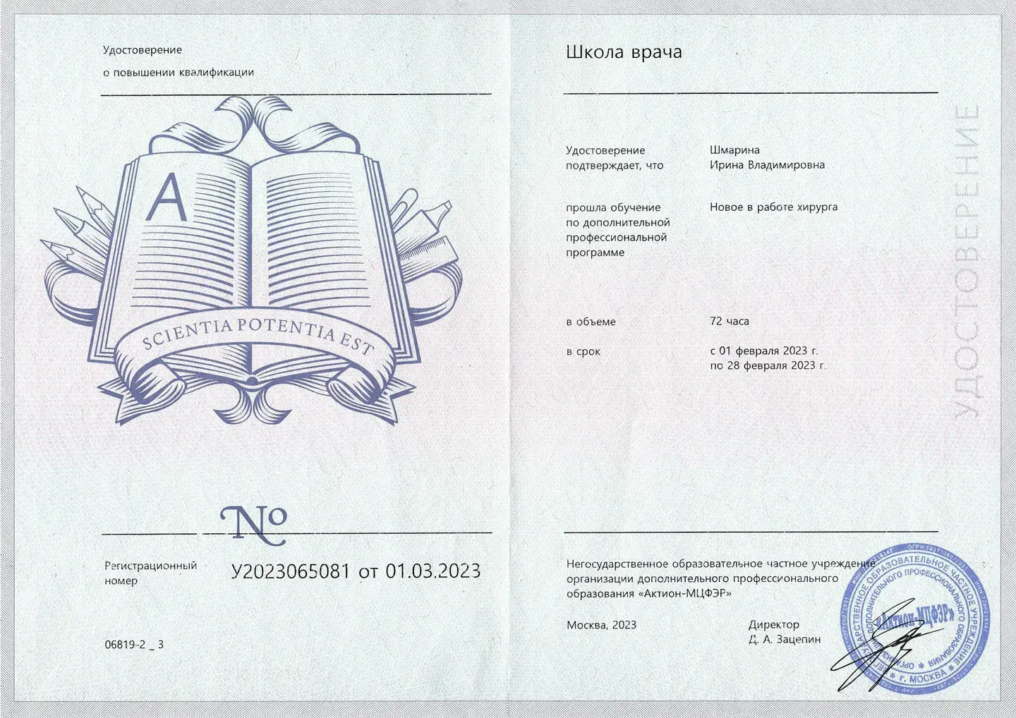 - Амбулаторный прием, проведение консультаций пациентов по вопросам общей, пластической и эстетической хирургии.